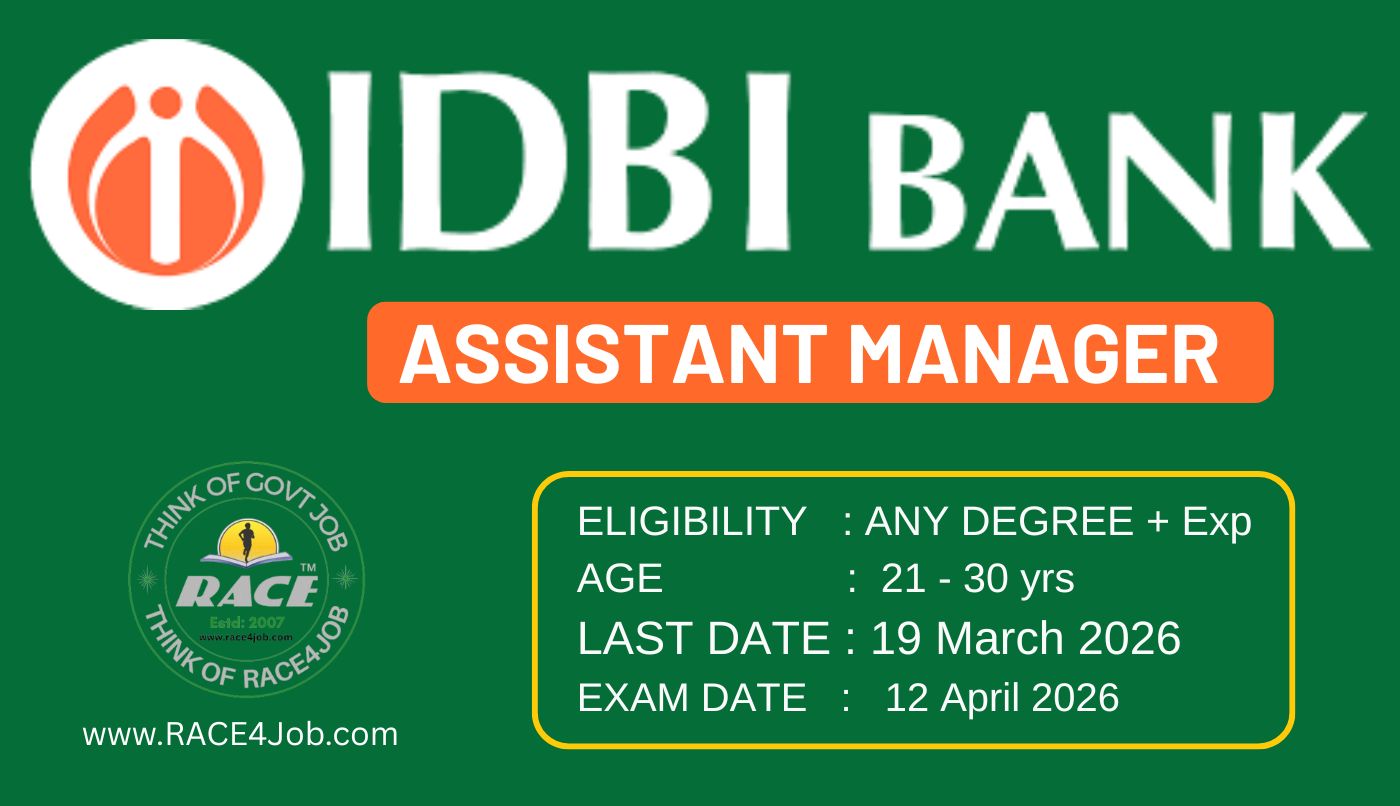 IDBI ASST MANAGR 2026. Eligibilty: Any Graduation. Experiance (as on 01-03-2026):Minimum 2 years’ experience. Age:21-30yrs (as on 01-03-2026). LAST DATE to Apply: 19-03-2026 Click for Details